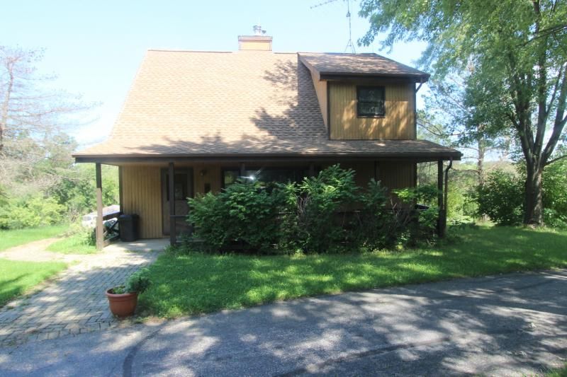 3 bedroom home on a sprawling 5+ acres of land! This home features a spacious living room with vaulted ceiling and a brick fireplace as the focal point of the room. The sturdy brick wraps around to the kitchen providing a rustic looking backsplash. A long galley kitchen gives lots of work space and cabinetry. The adjacent dining room is open to the kitchen, making serving meals a breeze. Upstairs are three bedrooms and a shared bath with a private entrance to the master bedroom. The loft overlooks the living room and makes a great space to work or play. There are additional living quarters in the finished walkout basement, along with an outdoor patio. The front of the home is accented with a front porch perfect for enjoying a sunset looking out over the property. Behind the house is a deck with views overlooking the green lawn and mature trees. A detached three car garage provides room for parking and storage. Zoned A-1 and near to downtown Alden and just minutes from Wisconsin.